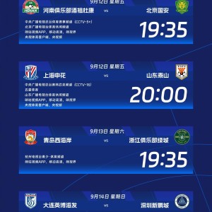 北京时间9月11日,中超官方发布联赛第24轮(部分场次)转播计划表,CCTV16转播上海申花vs山东泰山,CCTV5+转...