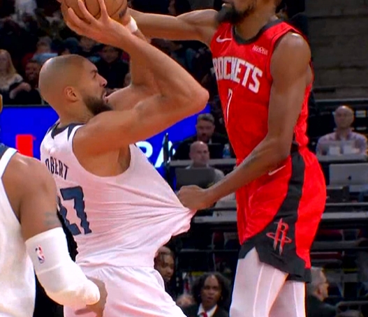 kiayun-亏死了!杜兰特一路扯着戈贝尔球衣最后终于帽掉 芬奇抱怨还吃一T