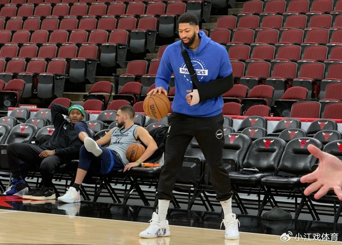 根据达拉斯队记的现场图片显示,浓眉左手腕处缠着厚绷带,并且需要固定板来支撑手臂。不过他看起来心情不错,面带笑容在训练场和工作人员有积极交流,并且利用仅有的右手进行了一些简单的单手投篮和运球。不知道这是否和他回到了家乡芝加哥有关。除此以外,球队另外两名伤员PJ-华盛顿和布兰登-威廉姆斯并未出现在现场,他们都会缺席与公牛一战。