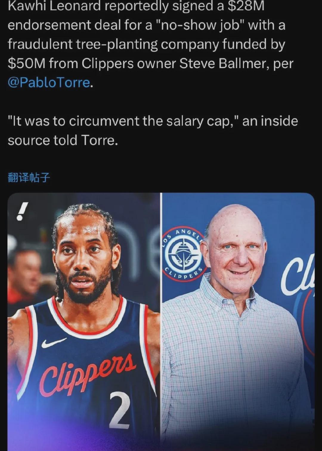 前几天不是写了伦纳德跟快船可能存在阴阳合同的事情嘛,今天有了点新的进展。