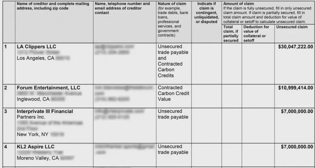这个宣告破产的Aspiration公司在破产申请文件中列出多个债权人的姓名,欠款最多的就是鲍尔默的快船。