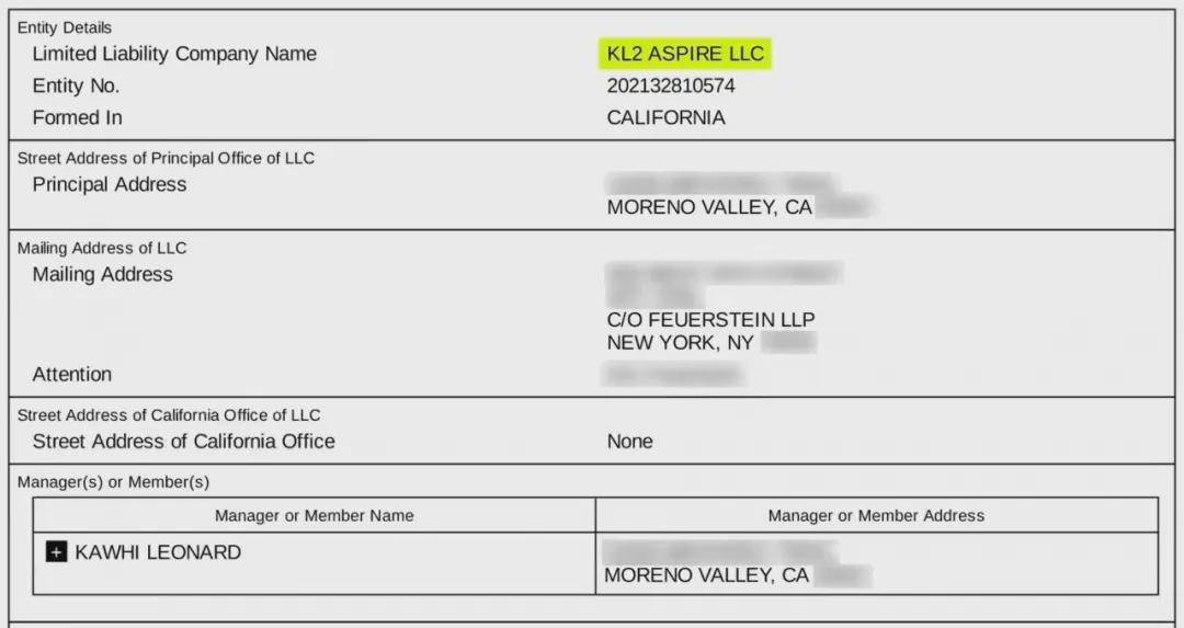 此外,在名单里还有一个名为KL2 Aspire的小公司,欠款700万美元,公司的登记经历正是伦纳德本人。