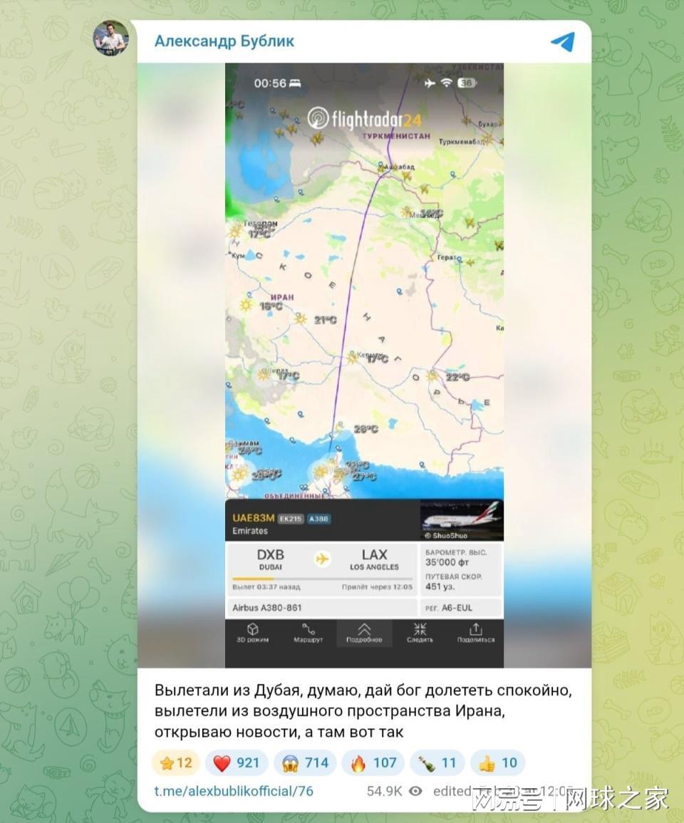 “我们离开迪拜时心想:如果上帝允许,这趟飞行会平安无事。我们才刚飞离伊朗领空,我就看了新闻,目睹了发生的一切。”布勃利克透露,当时飞机上所有人都很紧张,然后便开始祈祷,希望一切顺顺利利的。最终安全落地美国,飞机上的所有人都长出了一口气。