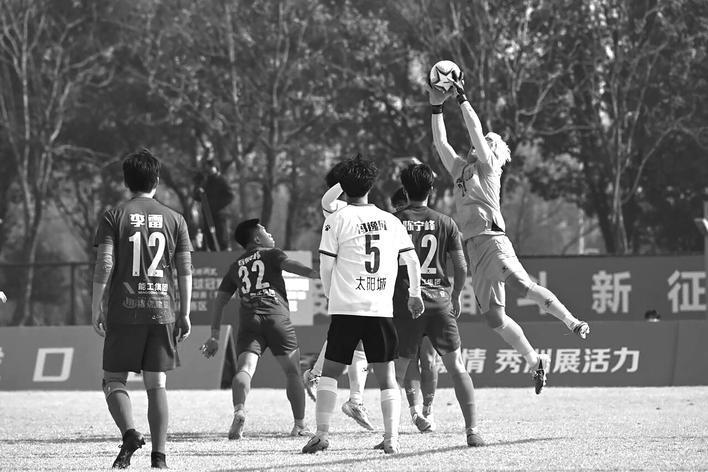 热血沸腾的秀洲球迷记得,小组赛收官战时,被细雨淋透的他们在主场大运河体育文化园全程高歌助威。这场雨中鏖战,秀洲队3∶0击败桐乡队,以六轮小组赛5胜1平的不败战绩锁定小组第一,强势晋级淘汰赛。淘汰赛阶段,球队的表现更为惊艳,半决赛时,秀洲队继续坐镇主场迎战南湖队,在第二场主城区德比中打响了酣畅淋漓的一战,最终以6∶0的大比分昂首挺进决赛。